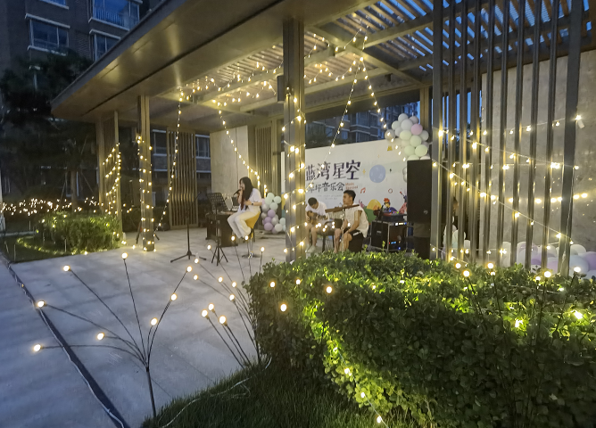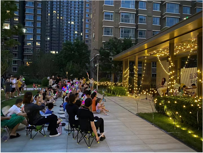 ?在這個美好的仲夏夜,孩子們和家人一起在草坪上席地而坐,華燈初上時,星空點點,晚風習習,動感的BGM、美妙的歌聲及優美的現場布置,開啟了夏威夷藍灣業主們浪漫的仲夏夜生活。在場的每一個人,都如同漫天星辰,在現場散發著美好生活的光芒,在大自然的環抱中,友好睦鄰,拉近心的距離。